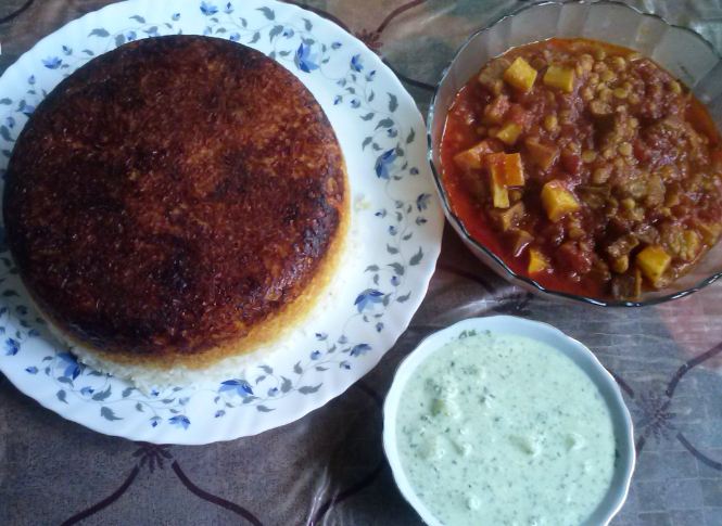 میتونید شیر هم بریزید، که باعث نرم شدن ته دیگ میشه، و مناسب افراد پیر و بی دندونه. :)